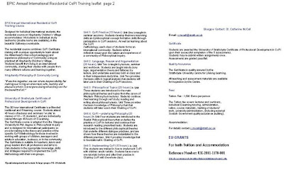 Every year in July, in the little village of La Chapelle St André (Burgundy - France), gather about 20-30 persons involved in philosophical practice (students, teachers, professors, counselors, trainers) in order to reflect on their work and improve professionally. For seven days, in English, these philosophy practitioners coming from the five continents will participate to different workshops, run workshops, analyze and evaluate them, theorize about the different issues involved.